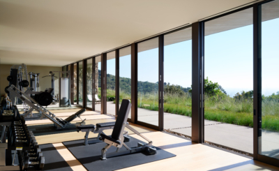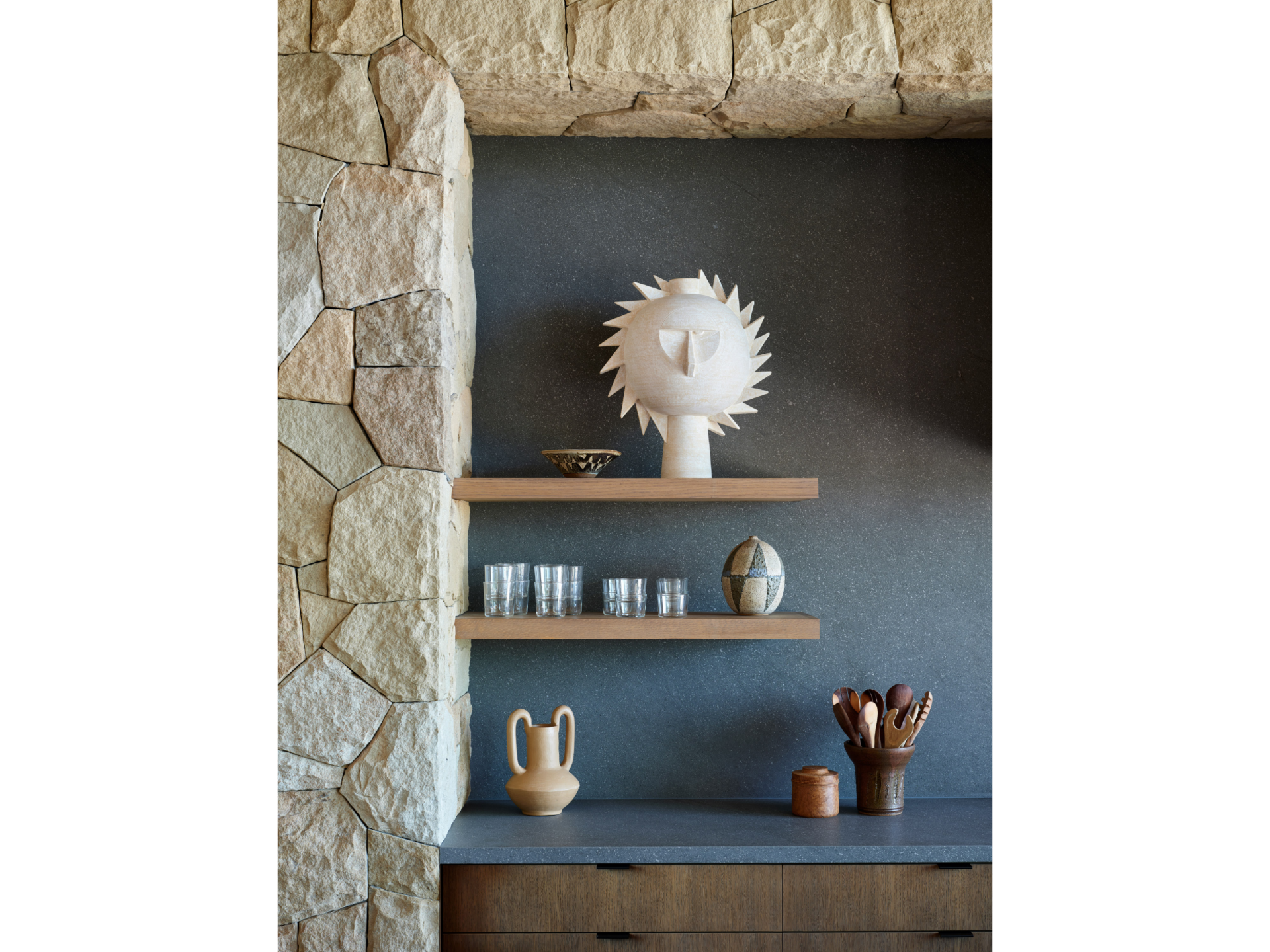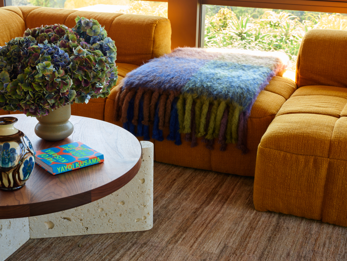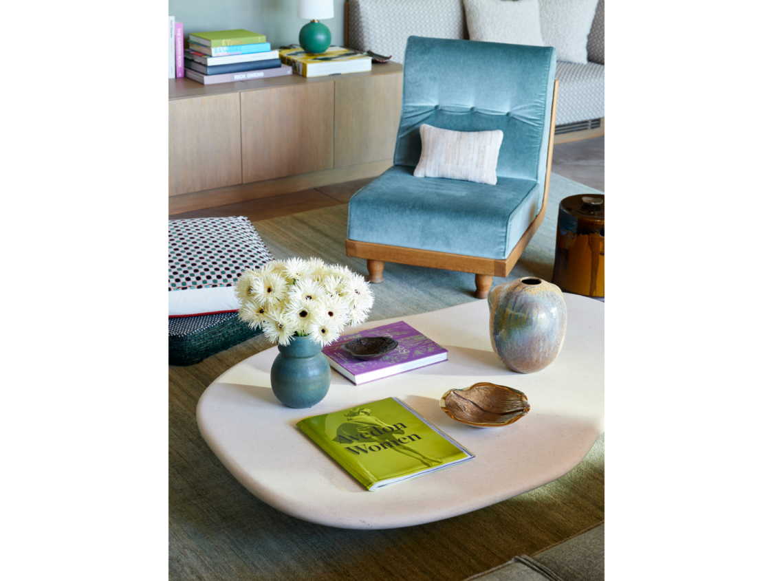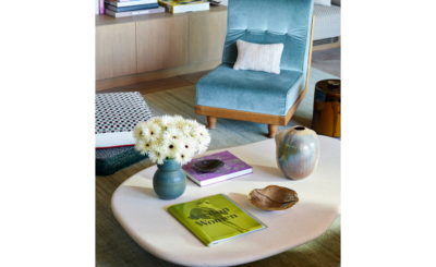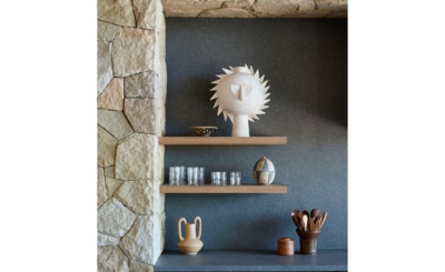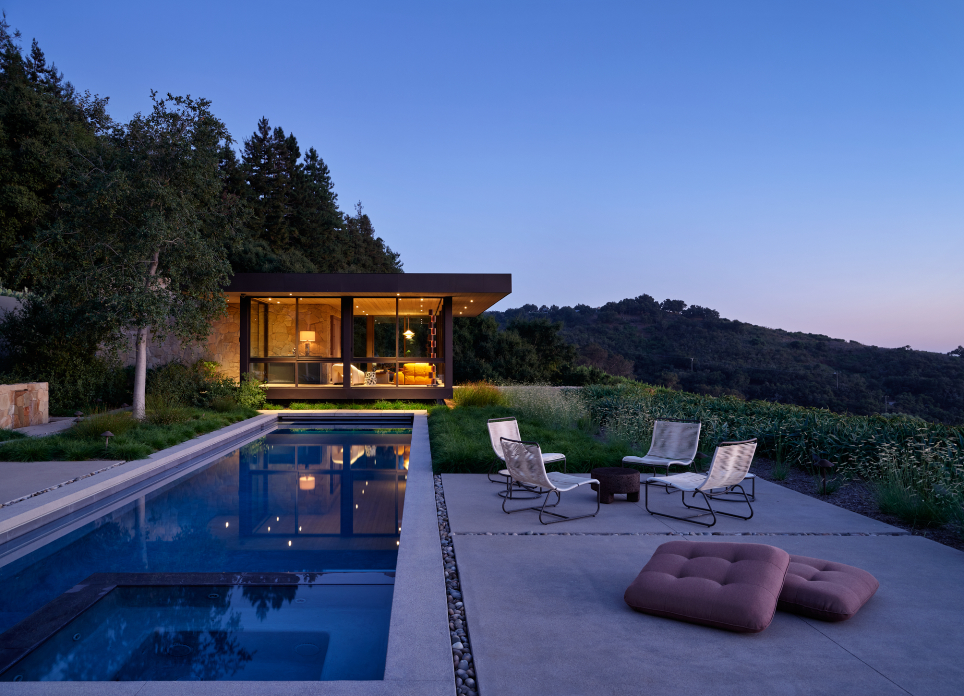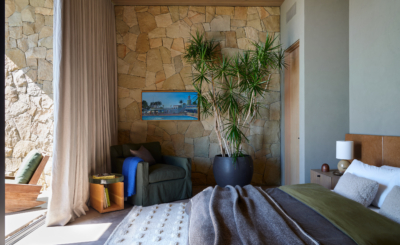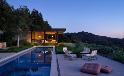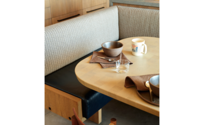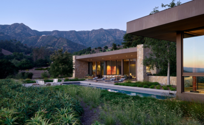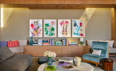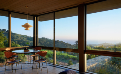 The interior design for this 3,700-square-foot structure accentuates the home’s indoor/outdoor connection and emphasizes its relationship to the site. A palette of warm organic materials harmonizes with the house’s architectural features. A mix of modernist design from the 1960s, contemporary furnishings, and custom furniture, create inviting and comfortable living spaces.